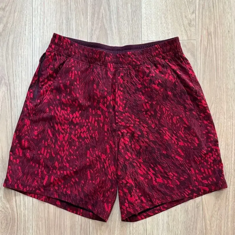 룰루레몬 숏팬츠 지퍼 포켓이 있어 실용성도 높습니다. - 색상: 빨간색 계열 패턴 - 포켓: 지퍼 포켓 - 스타일: 숏팬츠, 하프 팬츠 사이즈는 외국 사이즈 표기 M이므로, 일본 사이즈로는 M~L 정도라고 생각합니다. 저는 174cm, 70kg으로 사용했습니다. 몇 번 사용 후 소중히 집 벽장에 보관했습니다. 요가, 핫요가, 러닝, 헬스장, 스튜디오, 트레이닝 등 폭넓게 사용 가능합니다. 방문해 주셔서 감사합니다.