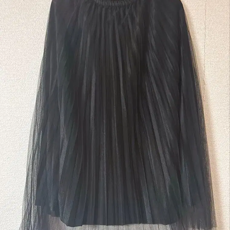 보르지 리프 튤 레이스 개더 롱 스커트 블랙