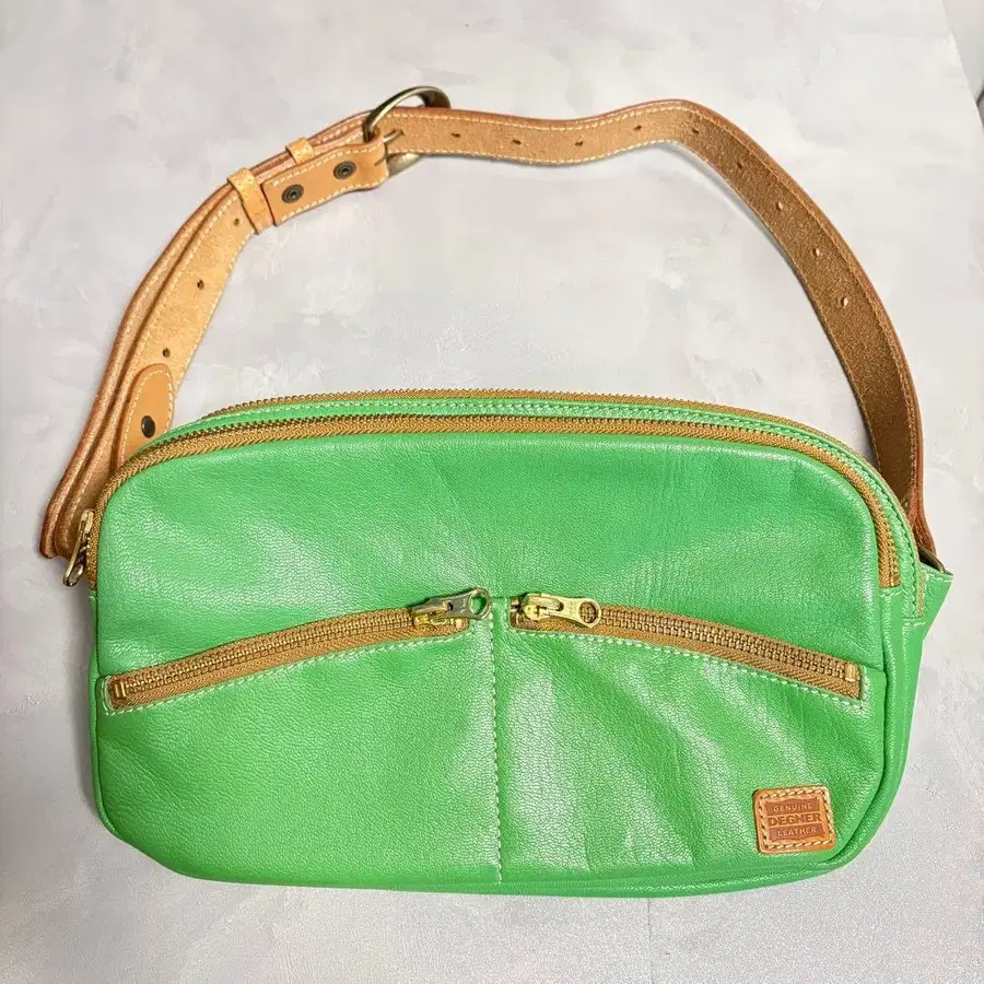 조정 가능한 벨트의 심플한 그린 가죽 백.