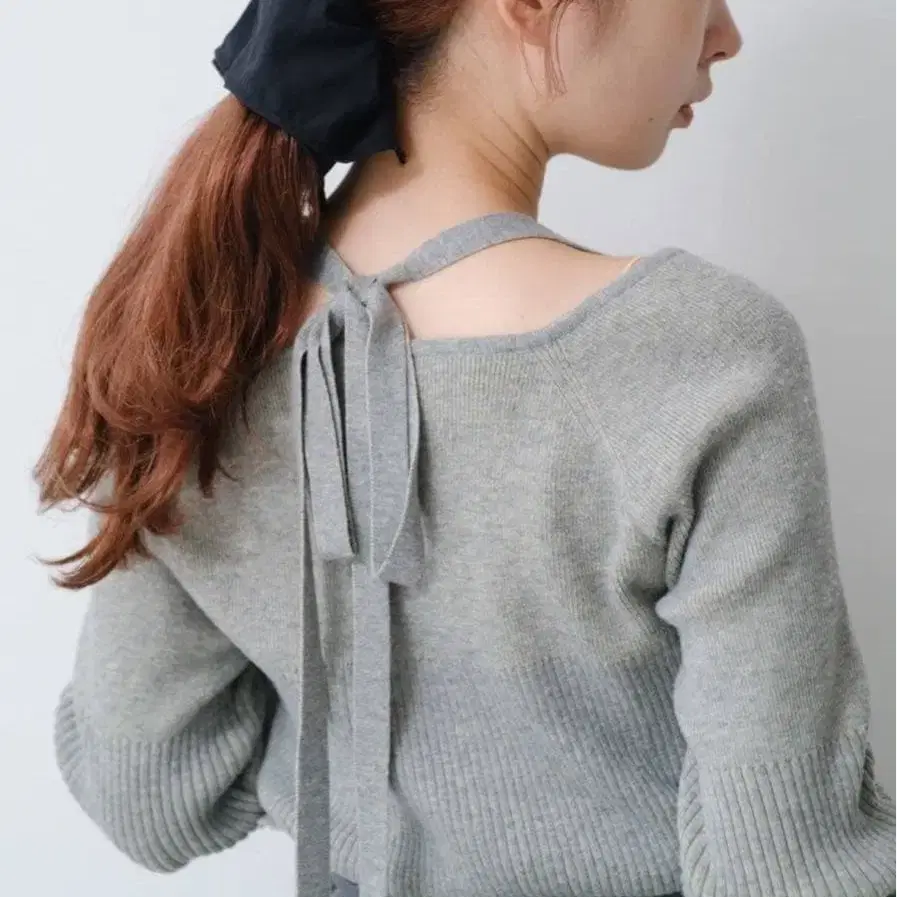 [ Kastane ] 백리본 그레이 리브 니트 긴팔