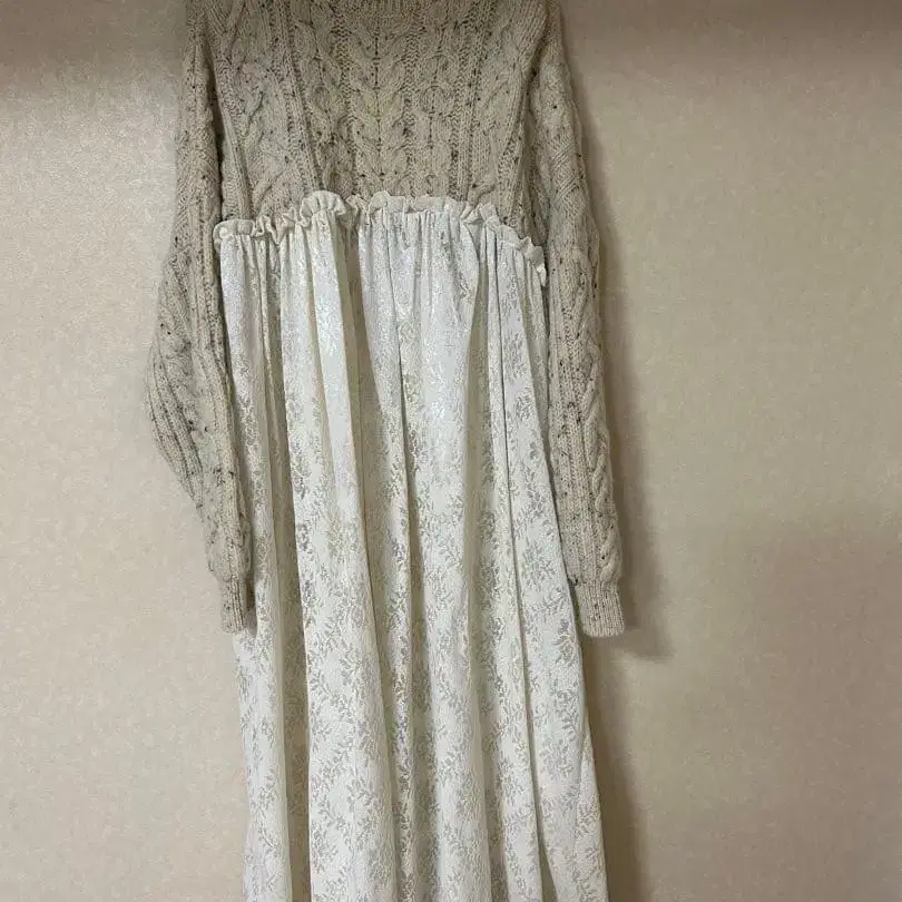 베이지색 터틀넥 니트와 레이스 스커트의 콤비네이션.