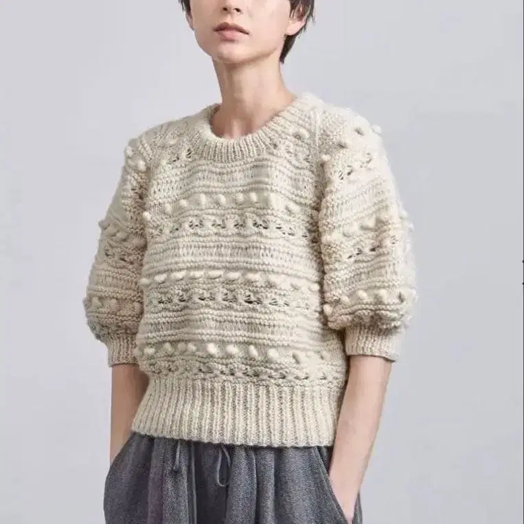 유나이티드 애로우즈 <Pheeta> Clara 숏 슬리브 니트 풀오버 거의 새상품 (시착을 위해 한 번 착용한 정도) 택은 제거했지만 함께 보내드립니다. 정가 44,000엔 (세금 포함) 1점 1점 손뜨개질로 만들어진 핸드 니트입니다. 손뜨개질로만 표현할 수 있는 따뜻한 아름다움을 시대와 장소를 초월하여 이어가는 시리즈 [Clara] ■ 디자인 입체감을 살린 볼륨 소매가 소재와 대비를 이루는 숏 슬리브 니트입니다. 지금까지 직물로 제작해 온 섬세한 레이스와 턱의 표현을 새롭게 니트로 구현했으며, 다양한 세밀한 편직 패턴을 조합했습니다. 힌두교 사원이나 축제에 빠질 수 없는 꽃 장식도 편직 패턴에 담았습니다. ■ 소재 인도의 원모를 네팔에서 방적하여 1점 1점 손뜨개질한 핸드 니트입니다. #유나이티드애로우즈 #unitedarrows #Pheeta #피타