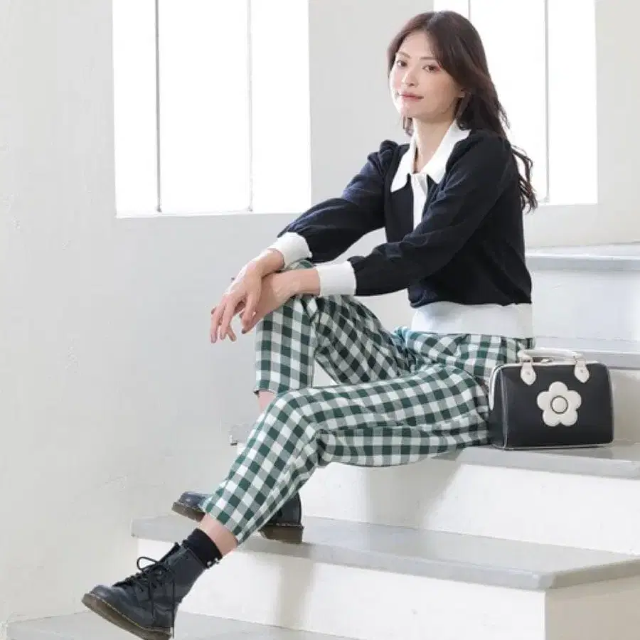 블랙 체크 무늬 슬랙스