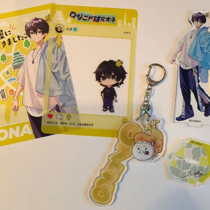 여자 연구 대학 니키 오나고야 굿즈 세트 - 키링 1개, 엽서 1개, 아크릴 스탠드 1개, 카드 1개 빠르게 처분하고 싶어서 약간의 가격 인하 가능합니다. 방문해 주셔서 감사합니다!