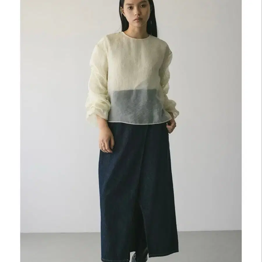 요철감이 있는 티셔츠 소재에 시어 소재를 레이어드한 블라우스입니다. 소매의 뉘앙스가 있는 턱이 모드 페미닌 요소를 더했습니다. 소매 끝은 밴딩 사양으로, 걷어 올려 착용하는 것도 가능합니다. 이너는 신축성이 있는 티셔츠 소재로 착용감이 좋은 아이템입니다. 스트레치 있음(이너만), 비침 없음.