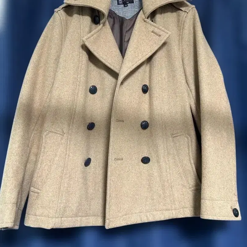 네이비 울 더블 브레스트 피 코트