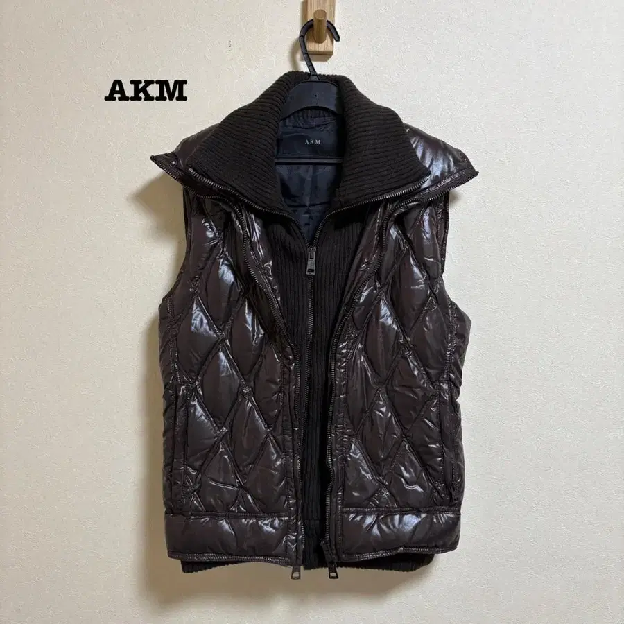 AKM 퀼팅 다운 베스트 캐시미어 혼방 니트 절개