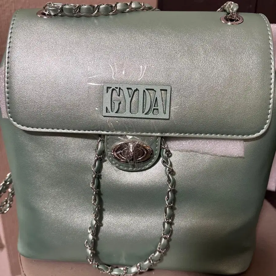 민트 그린 색상의 합성 피혁 소재 숄더백입니다. 메탈 체인이 달려 있어 스타일리시합니다. - 브랜드: GYDA - 색상: 민트 그린 - 소재: 합성 피혁 - 스타일: 백팩 - 체인: 메탈 체인 방문해 주셔서 감사합니다.