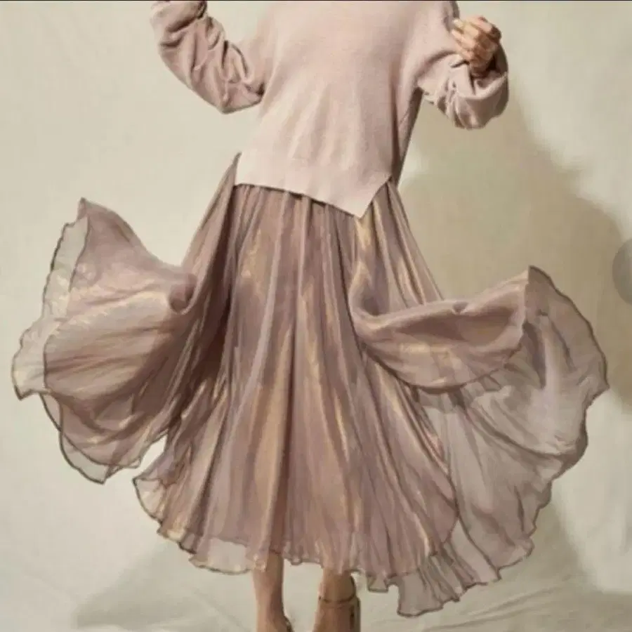 새상품 La boutique BonBon 시어 턱 스커트 롱 스커트