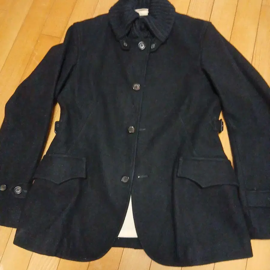 울 소재의 네이비 코트 - 브랜드: Blue-Walk - 색상: 네이비 - 디자인: 버튼이 달린 코트 - 소재: 울 - 안쪽 색상: 크림색 - 라벨: Blue-Walk 잘 부탁드립니다.