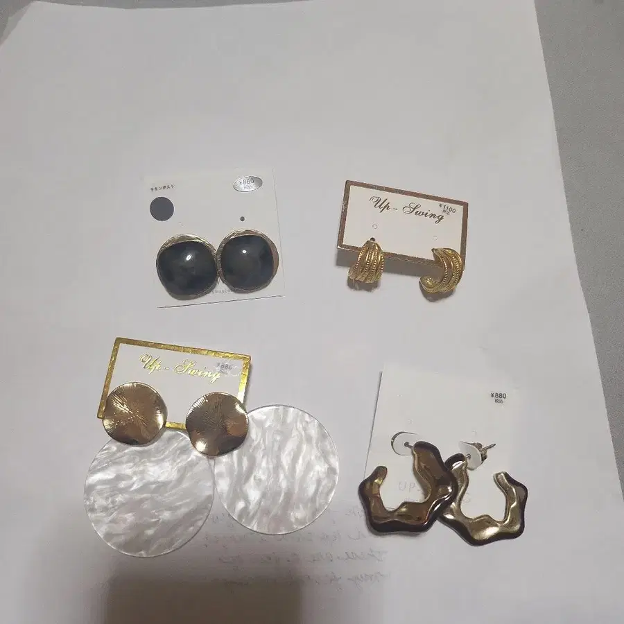 웨이브 디자인의 골드 귀걸이와 블랙 귀걸이 세트.