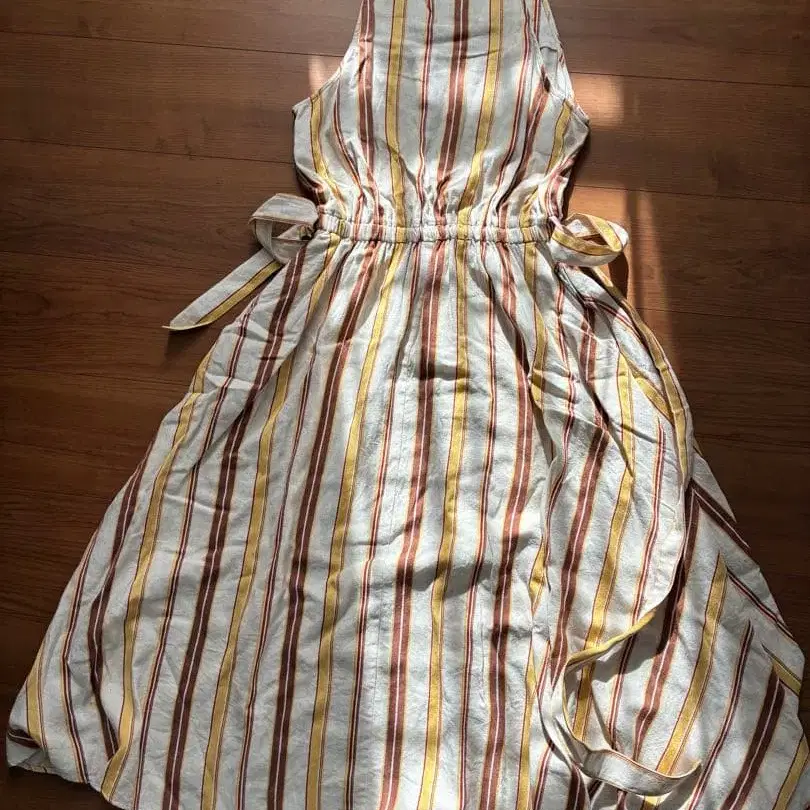 스트라이프 패턴의 슬리브리스 롱 원피스, 가벼운 소재감. - 브랜드: PHEENY - 사이즈: F - 소재: 면 45%, 폴리에스테르 32%, 레이온 23% - 디자인: 스트라이프 패턴 - 스타일: 슬리브리스 방문해 주셔서 감사합니다.