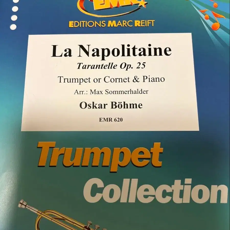 베이메 작곡, 나폴리테누의 악보입니다. 트럼펫과 피아노 편성입니다. 미사용이지만, 표지와 뒷표지에 약간의 흠집이 있습니다. 모서리에 작은 접힘이 있습니다. 사용에는 지장이 없으나, 미세한 흠집을 신경 쓰시는 분이나 새상품급을 원하시는 분은 구매를 삼가해 주십시오. 솔로 콘서트나 연주회 등에 어떠신가요? 잘 부탁드립니다. 취주악 클래식 트럼펫