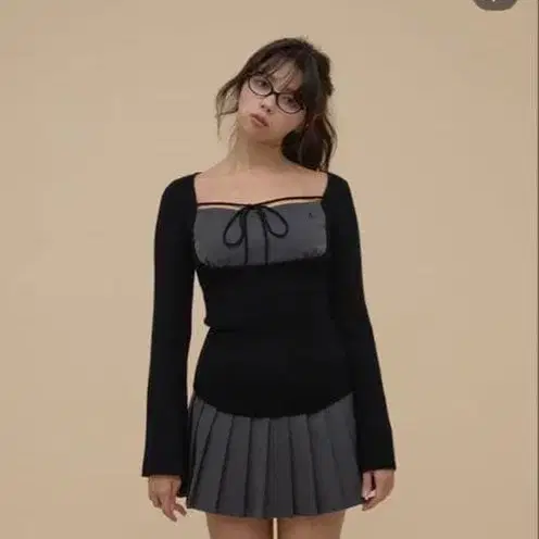 machatt 마차트 니트와 스커트 2종 셋업 부클레 니트 블랙