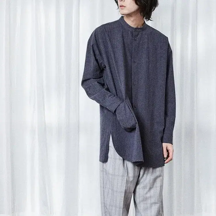 SHINYA 다크 그레이 스탠드 카라 셔츠 사이즈 2