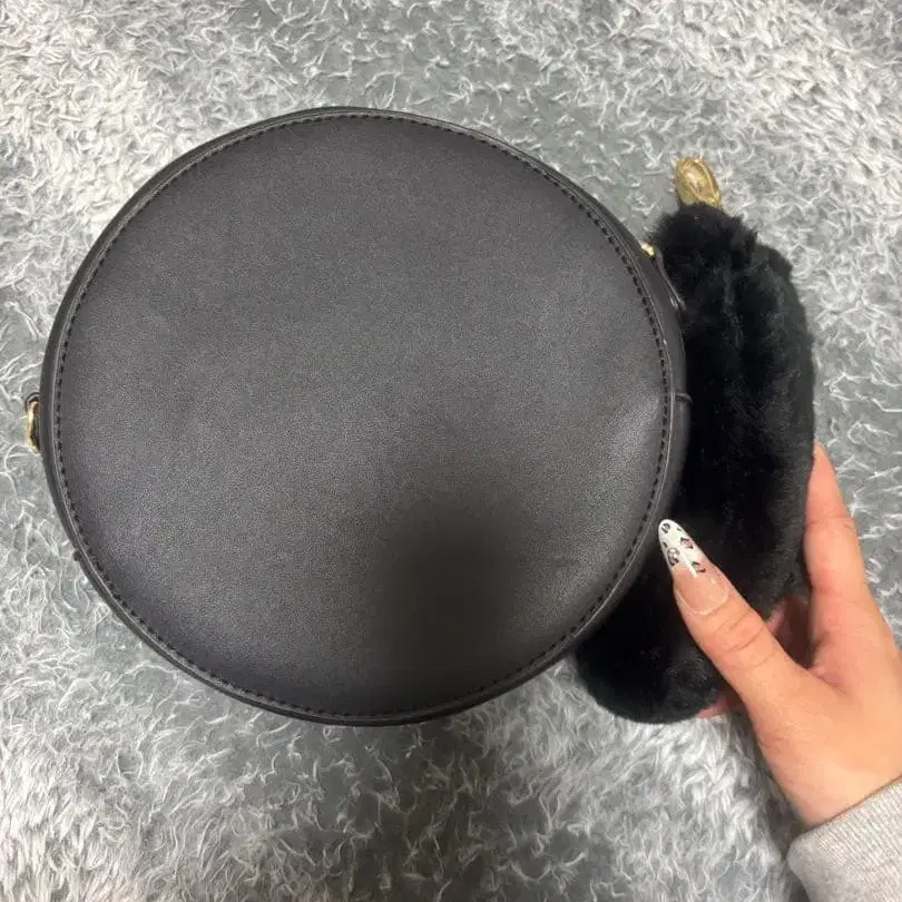 원형 디자인의 블랙 숄더백, 퍼가 달린 핸들과 골드 지퍼가 특징. - 색상: 블랙 - 디자인: 원형 - 지퍼: 골드 지퍼 - 핸들: 퍼 포함 핸들 방문해 주셔서 감사합니다.