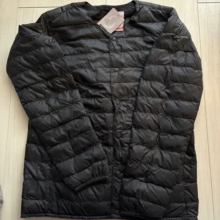 자동 번역되었어요. 원문보기친환경 다운 소재를 사용한 블랙 다운 자켓.