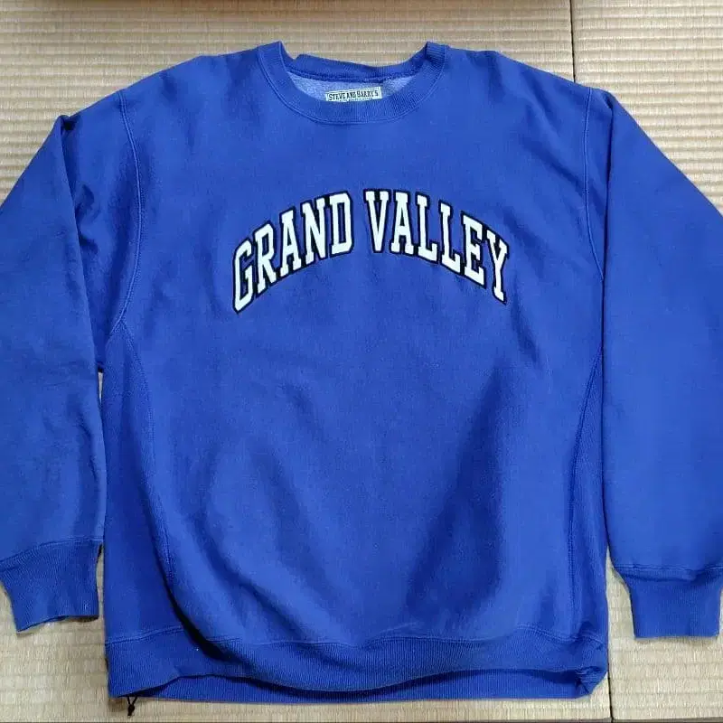 steve & barrys의 파랑 맨투맨으로 리버스 위브라 튼튼합니다. 암홀이 커서 멋스럽습니다. 기장이 약간 길고 드로 코드가 달려 있습니다. 참고 사이즈 가슴 너비 약 62cm, 기장 약 71cm