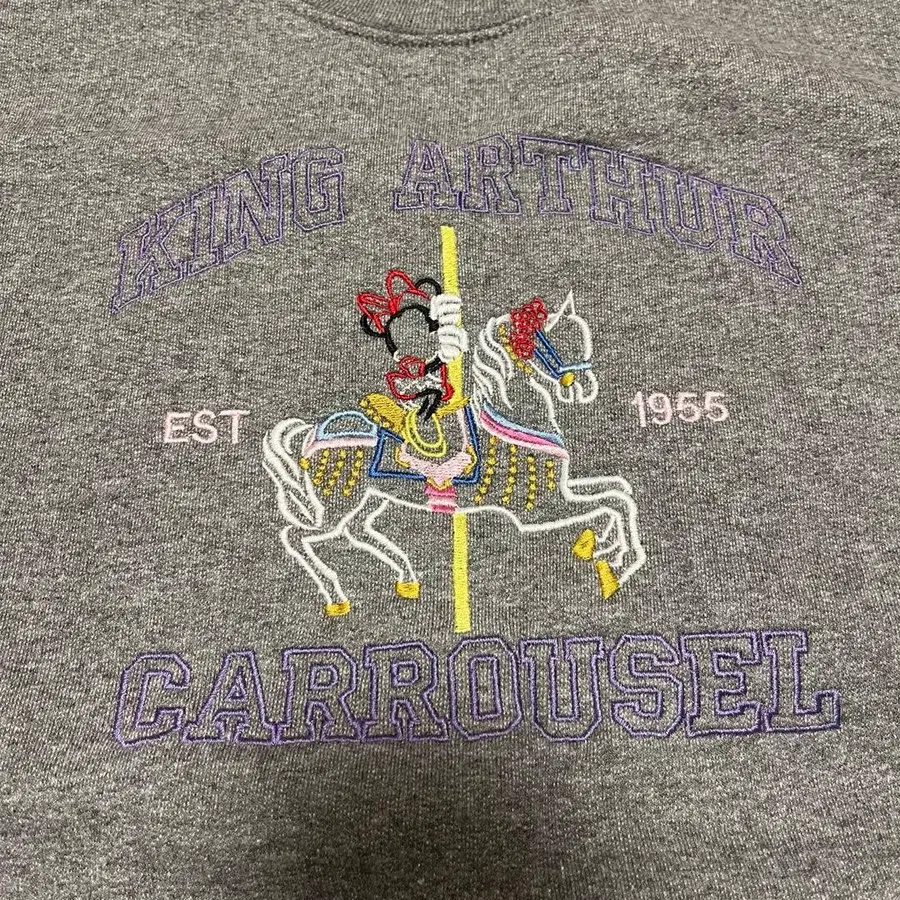 애너하임 디즈니랜드의 트랙션 킹 아서 회전목마 자수가 들어간 트레이닝복입니다.