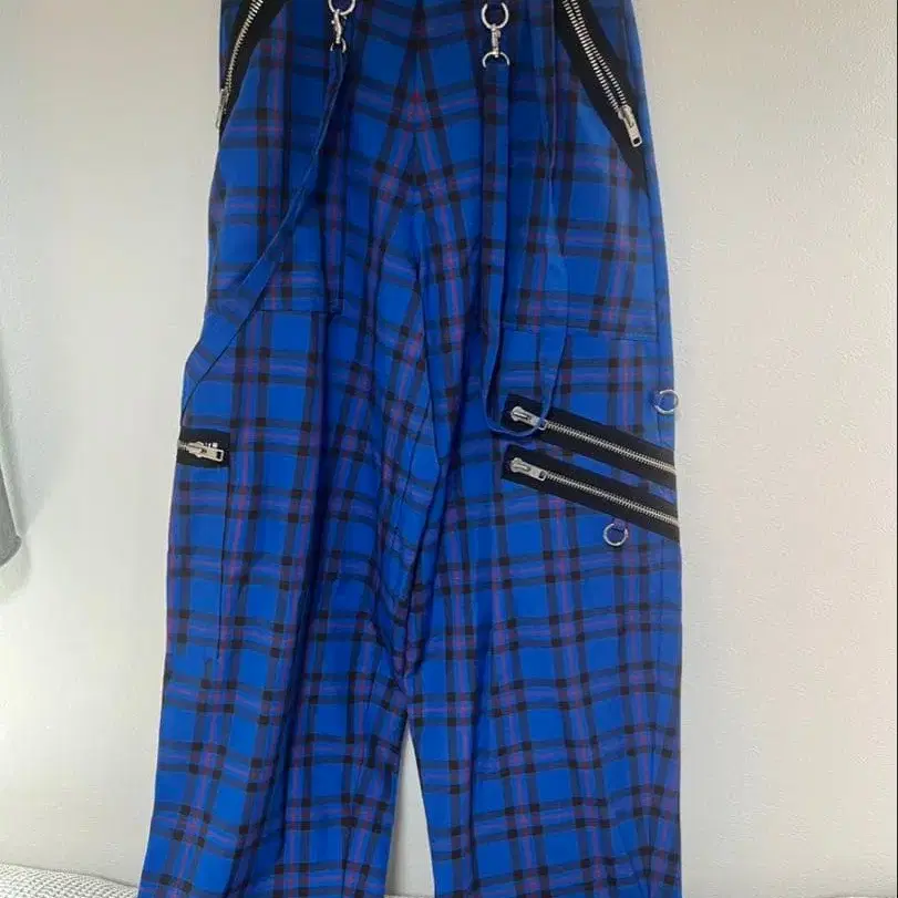 파랑과 블랙 체크 무늬에 지퍼 포켓 장식이 특징입니다. - 색상: 파랑과 블랙 체크 무늬 - 디자인: 지퍼 포켓 - 스타일: 스트릿 패션 - 착용 장면: 캐주얼 - 소재: 경량으로 움직이기 편함. 방문해 주셔서 감사합니다. 사이즈 - L