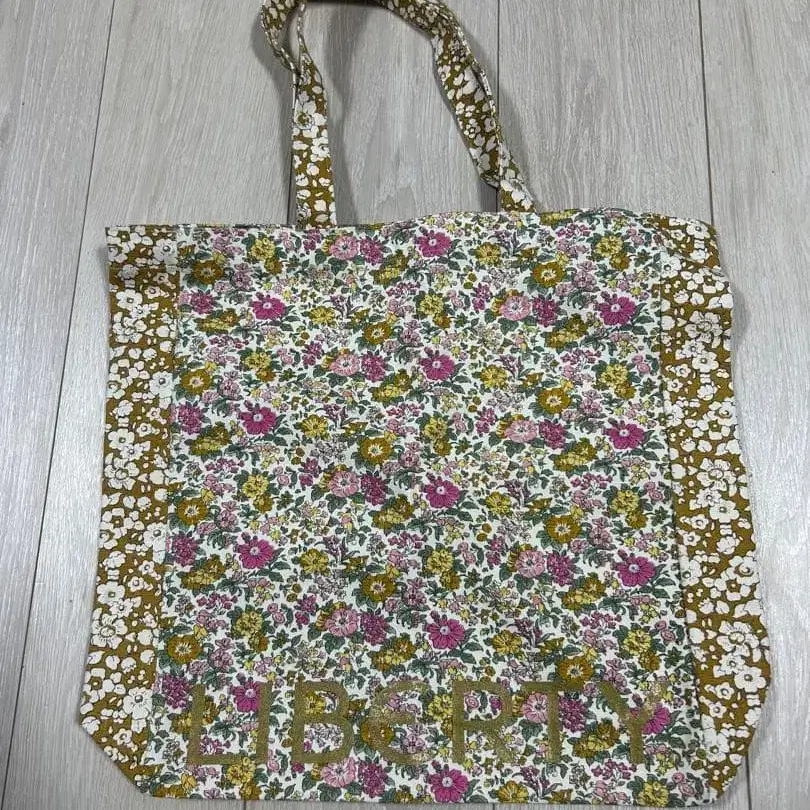 런던 리버티 백화점에서 구매했습니다. 캔버스 소재로, 스스로 서지는 않지만 튼튼하게 만들어졌습니다. 택 포함 새상품 100% 오가닉 코튼 Cotton 세로 37cm (손잡이 포함 시 60cm) 가로 33cm (옆 바닥 9cm) 바닥 (마치) 9cm