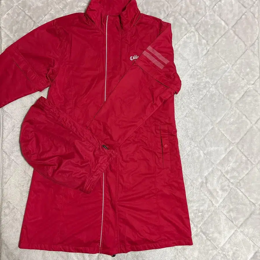 방문해 주셔서 감사합니다. 브랜드 캘러웨이 색상 레드, 차분한 빨간색입니다. 사이즈 가슴 너비 (평평하게 놓음) 47cm 기장 85cm 후드와 소매 탈부착 가능합니다. 3회 착용했습니다. 제 개인적인 생각으로는 흠집 등은 보이지 않으며 벨크로 테이프도 깨끗합니다.