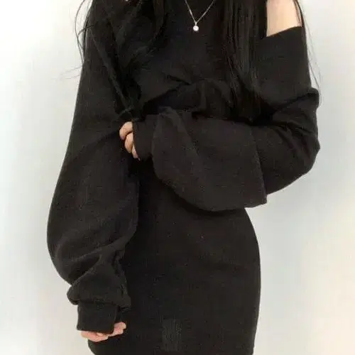 오프숄더 롱 리브 니트 원피스
