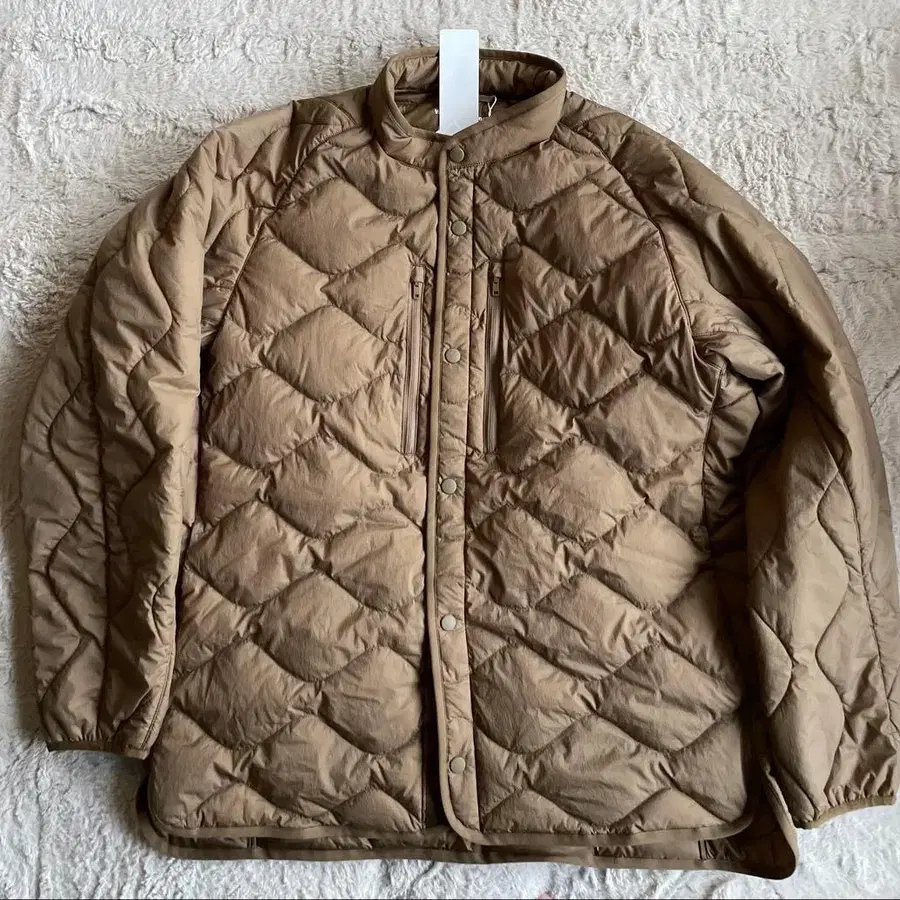 유니클로 UNIQLOx 화이트 마운티니어링 White Mountaineering 리사이클 하이브리드 다운 자켓 색상은 브라운, 사이즈 XL 가슴 너비 63, 기장 77cm 미사용 새상품