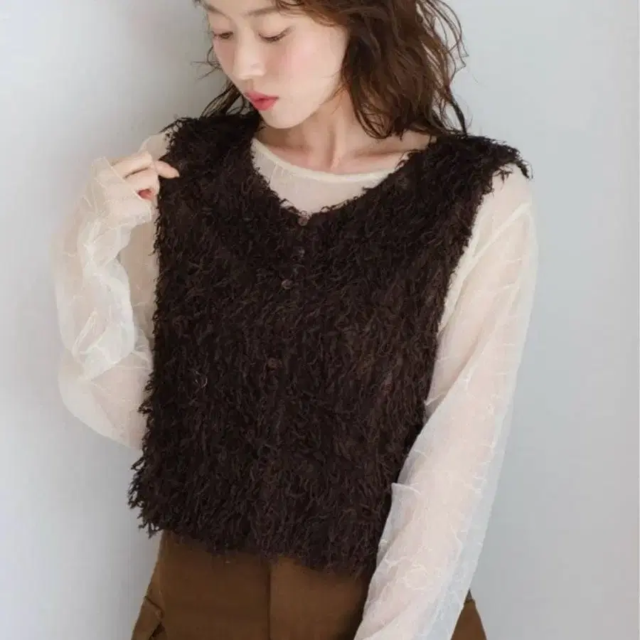 discoat 페더얀 프린지 베스트 라이트 브라운
