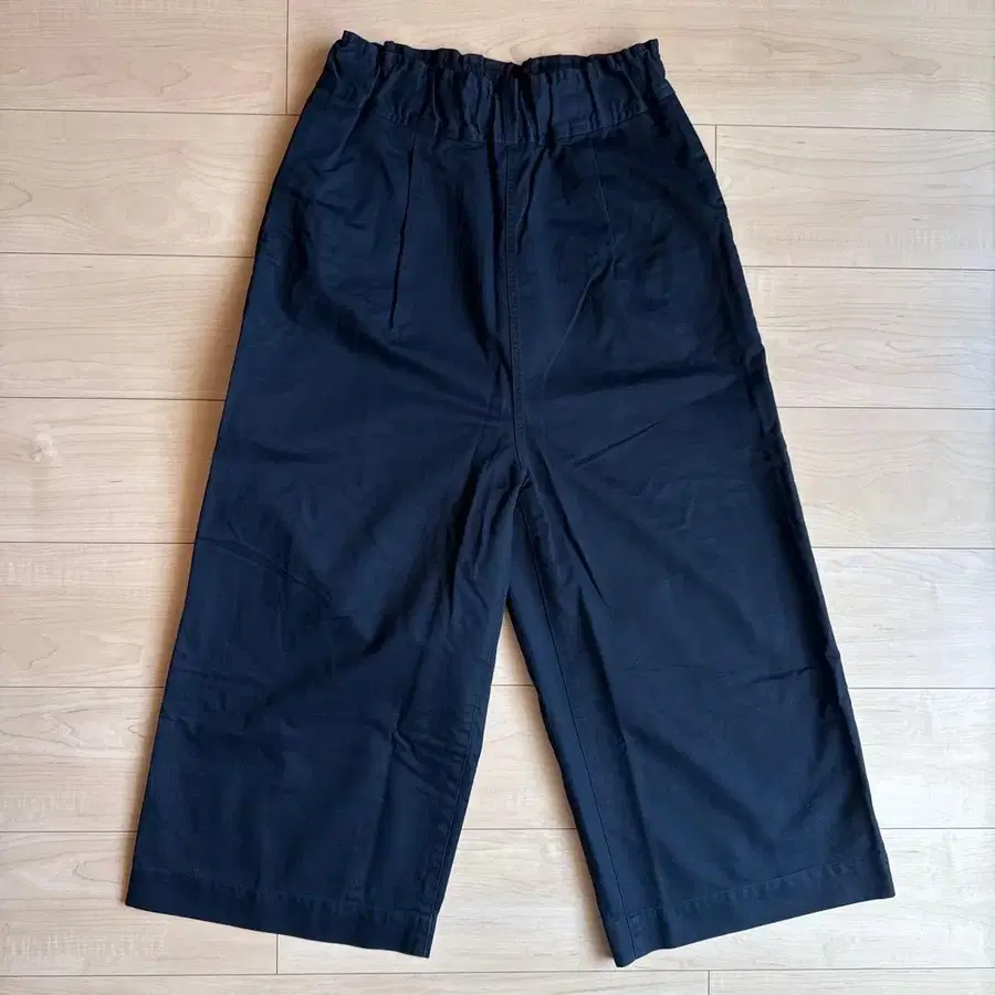트리코트 와이드 로우라이즈 팬츠 블랙 일본제 면 혼방 이지 팬츠