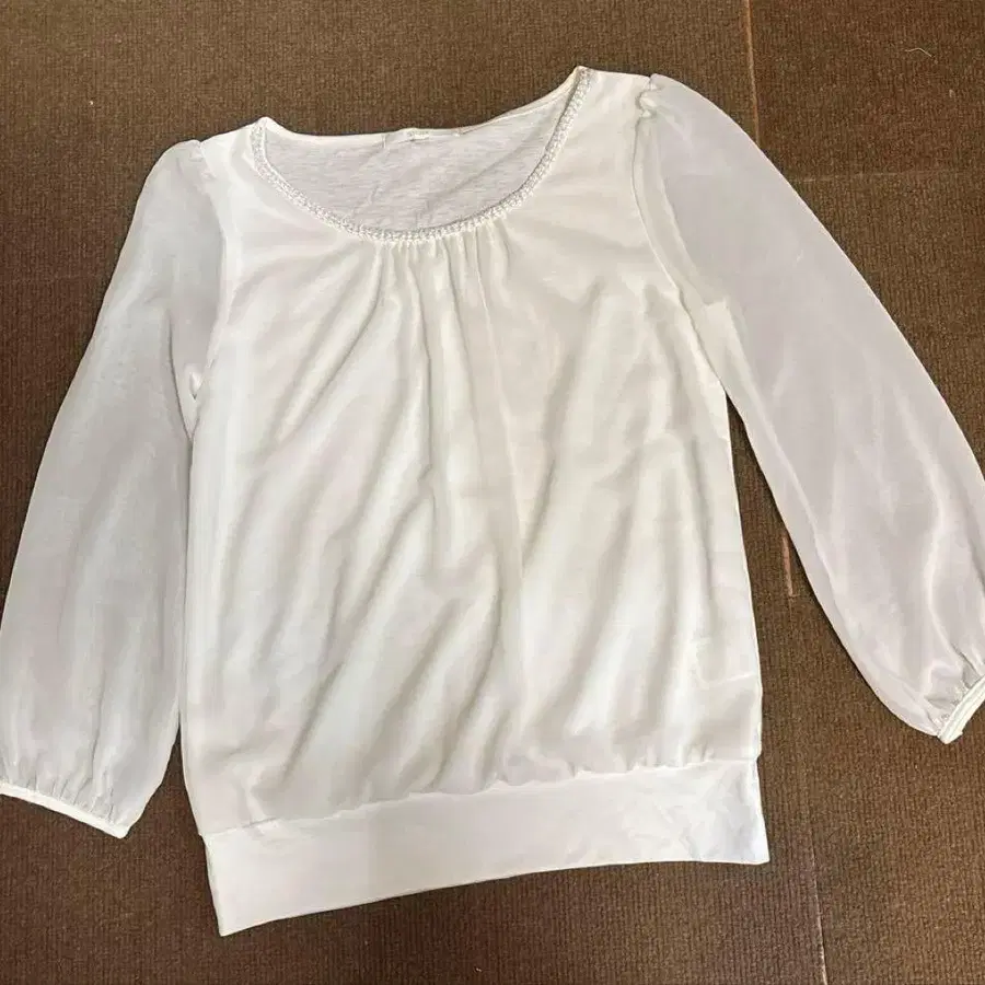 가벼운 화이트 7부 소매 블라우스, 비쥬 장식 포함. - 색상: 화이트 - 소매 길이: 7부 소매 - 디자인: 라운드넥 - 소재: 경량 소재 - 특징: 프릴 장식 방문해 주셔서 감사합니다.