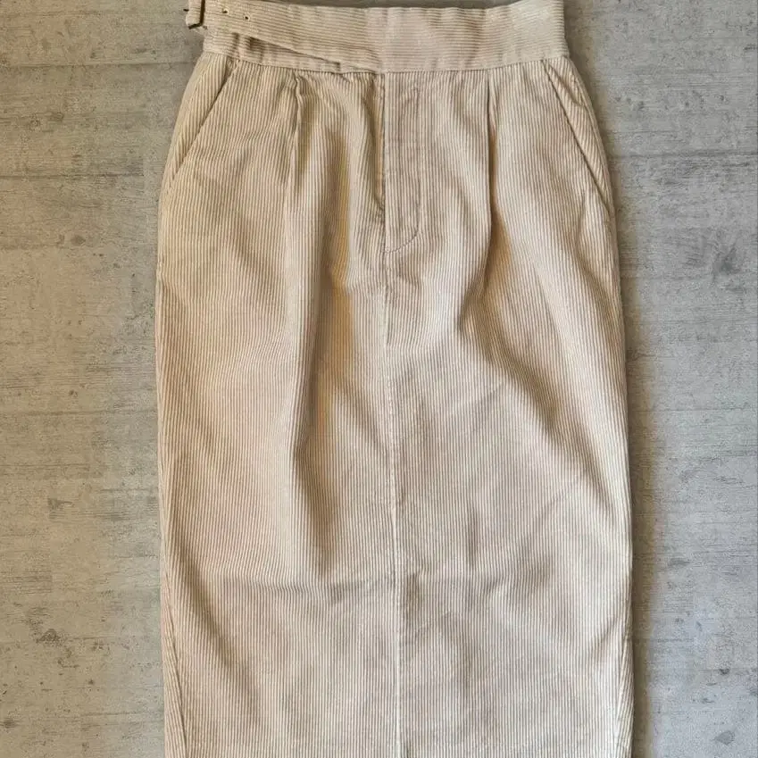 INED 랩 스커트 코듀로이 베이지 무릎 기장 스커트 심플 귀여운