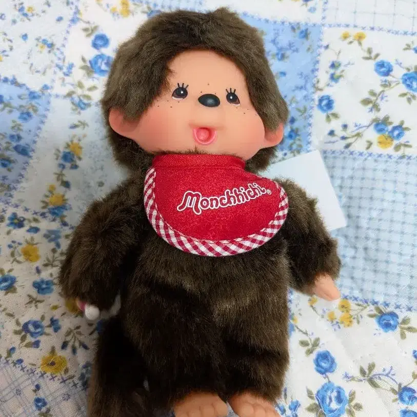 빨간색 반다나를 착용한 브라운 색상의 몽치치 봉제 인형, 미사용 상태에 오리지널 택 포함. - 몽치치 - 색상: 브라운 - 특징: 빨간색 반다나 포함 - 택: 오리지널 택 포함