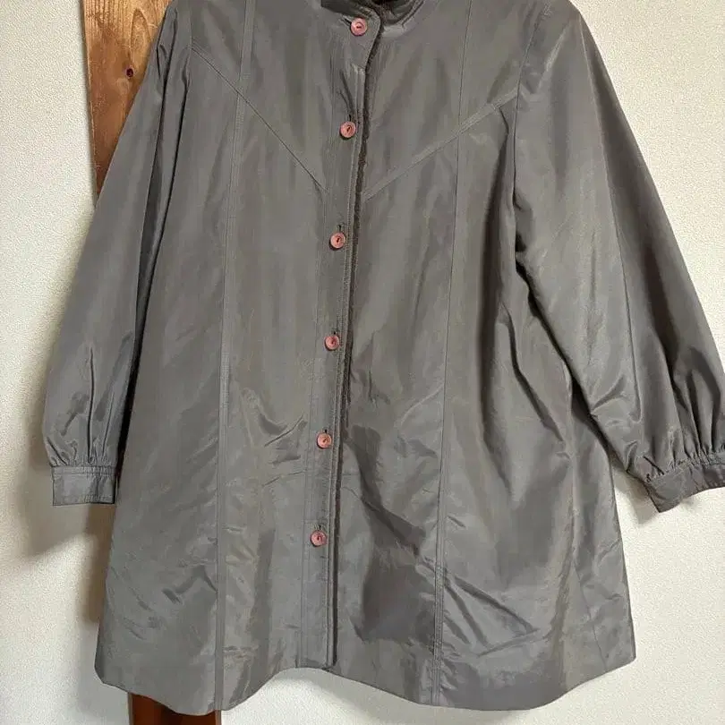 스탠드 칼라와 버튼 디자인의 그레이 코트, 경량으로 따뜻한 퀼트 보아 안감. - 색상: 그레이 - 디자인: 버튼 포함, 스탠드 칼라 - 소재: 겉감: 폴리에스테르 83%, 면 17%, 안감: 퀼트 보아 100% 방문해 주셔서 감사합니다. 사이즈 - L