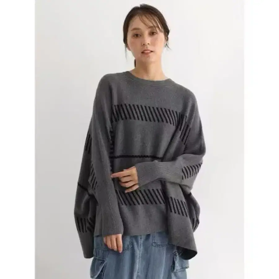 ■ 자카드 직조 라인 디자인이 시선을 사로잡는 돌먼 실루엣의 니트