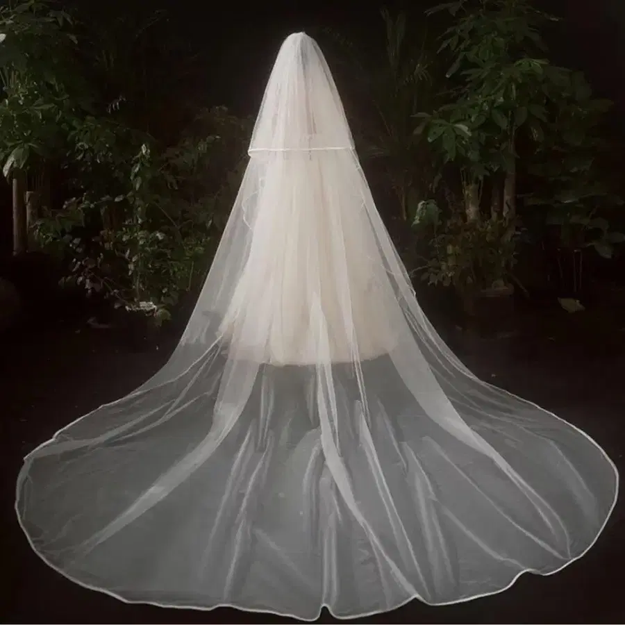 결혼식에서 30분 정도 사용했습니다. 롱 베일이라 사진에 잘 나와서 매우 좋았습니다. 3, 4번째 이미지와 같은 형태로 발송되므로, 도착 후에는 행거 등에 걸어 주름을 펴는 것을 추천합니다.