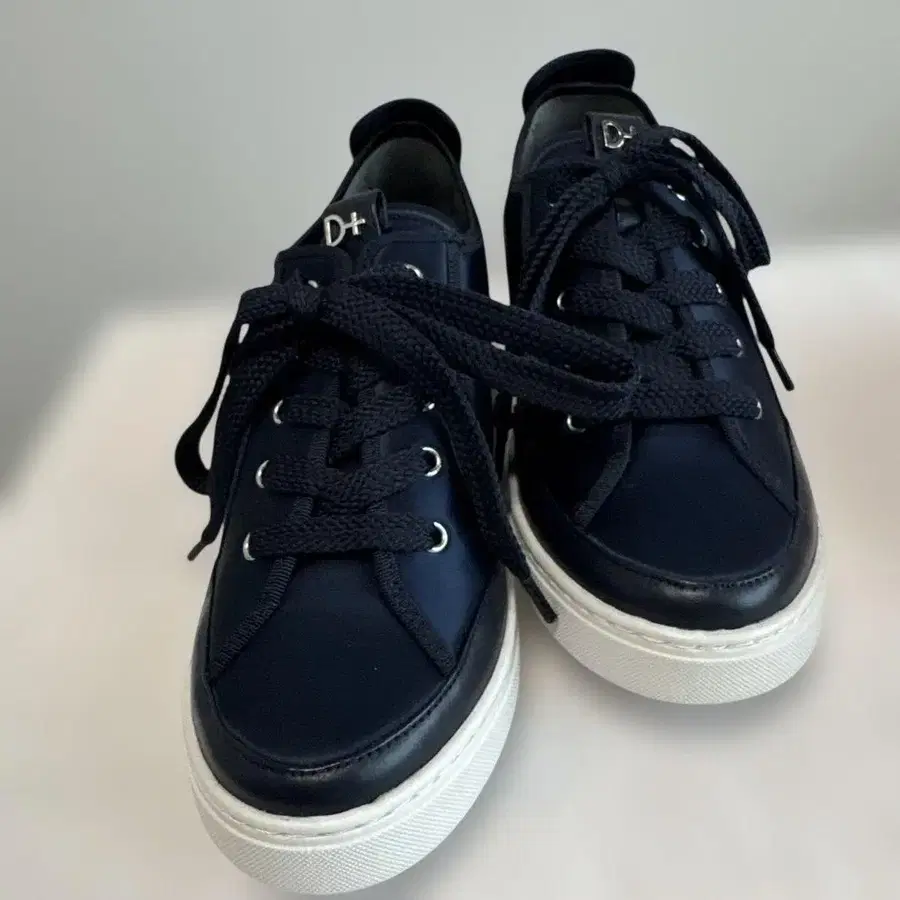 +DIANA 스니커즈입니다. 네이비 새틴 소재, 쿠션 인힐. 시착만 한 상품, 미사용입니다. 네이비 색상은 보기 드물다고 생각합니다. 상자에 넣어 발송합니다.