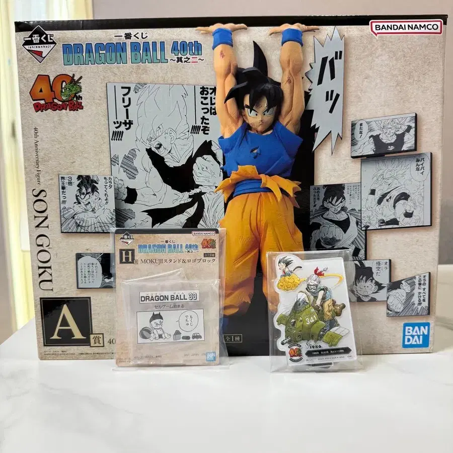 제일복권 드래곤볼 40th ~그之二~ 3점 묶음 판매입니다. A상 40th Anniversary Figure ~손오공~ F상 ACLLECT-드래곤볼- ~토리야마 아키라의 세계~Ⅱ는 F-4 H상 MOKUJI 스탠드 & 로고 블록 제일복권 DRAGON BALL a상 드래곤볼 손오공 피규어