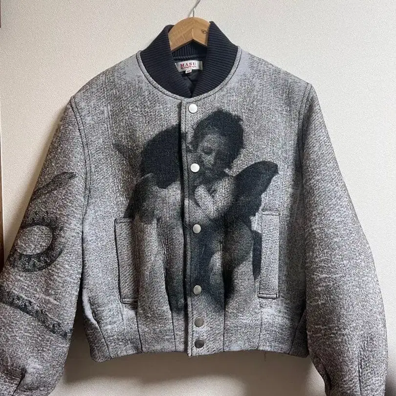 [MASU] 2025 FW [ 20XX ] 컬렉션의 엔젤 모티브 봄버 자켓입니다.