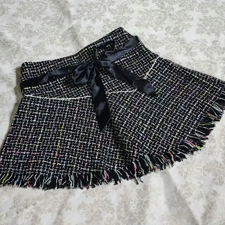 리본 트위드 사다리꼴 스커트 앙크루즈