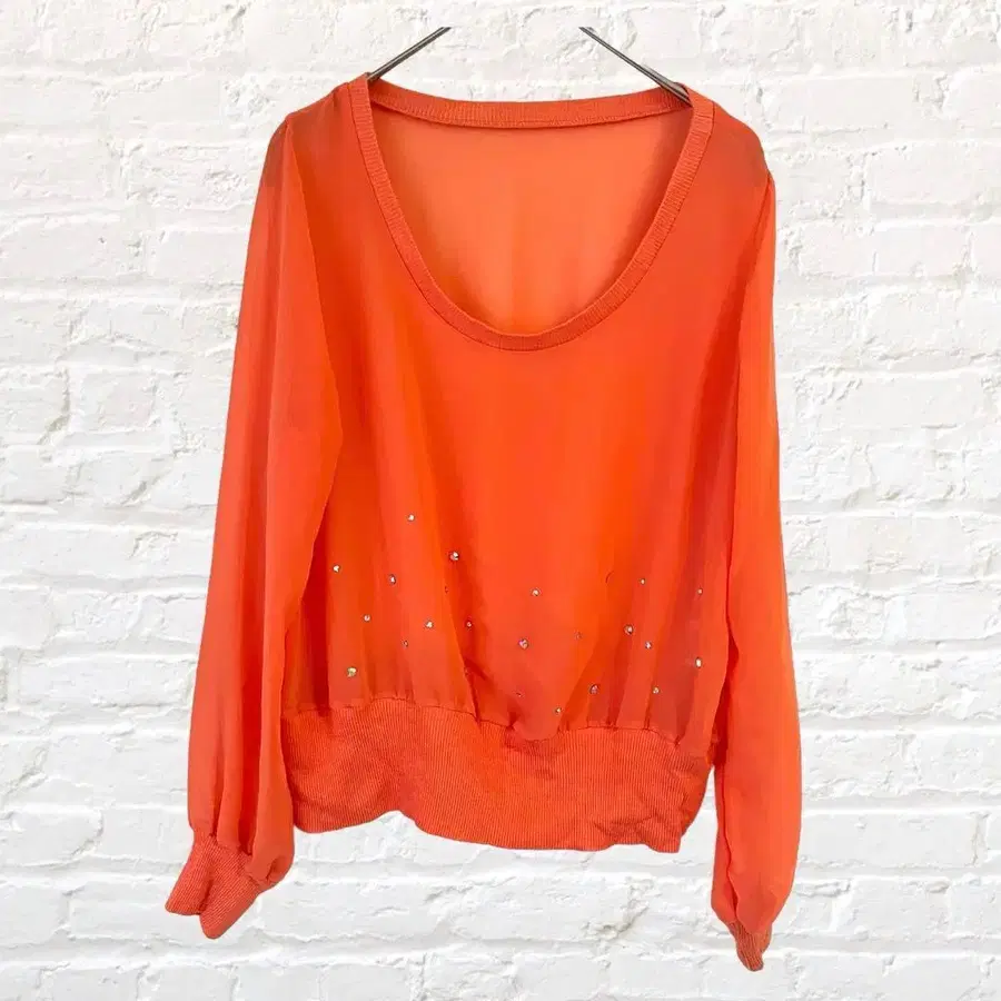 riih 시어 셔츠 티셔츠 오로라 비쥬 긴팔 오렌지 반짝이