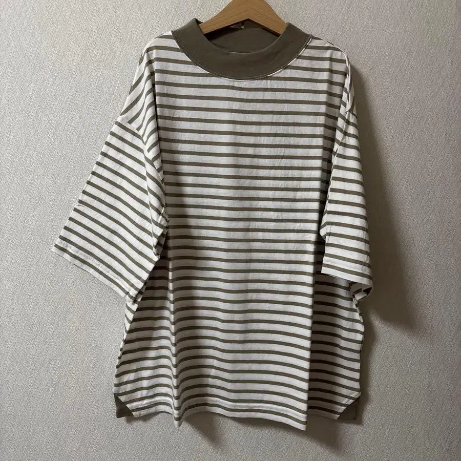 미사용 새상품 택 포함 Clip-tab 화이트/올리브 스트라이프 티셔츠