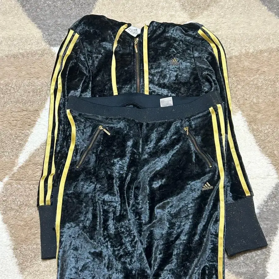 벨벳 소재의 adidas 풀 집업 후드티와 팬츠 세트. - 브랜드: adidas - 색상: 블랙/골드 - 소재: 벨벳 - 스타일: 풀 집업 후드티 - 사이즈: UK 12 / USA 8 / EU 40 / JP 38 방문해 주셔서 감사합니다. 사이즈 - L