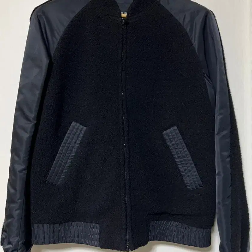 플리스와 나일론의 콤비네이션으로, 집업 스타일의 바시티 자켓. - 색상: 블랙 - 소재: 플리스와 나일론 - 브랜드: hans + horns - 디자인: 집업, 포켓 부착 - 스타일: 바시티 자켓 - 사이즈 S 가슴 너비 51cm, 기장 62cm 방문해 주셔서 감사합니다. 사이즈 - S