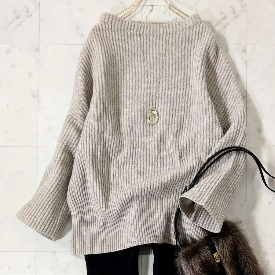 캐시미어 혼방의 부드러운 질감이 착용감이 좋은 니트입니다.