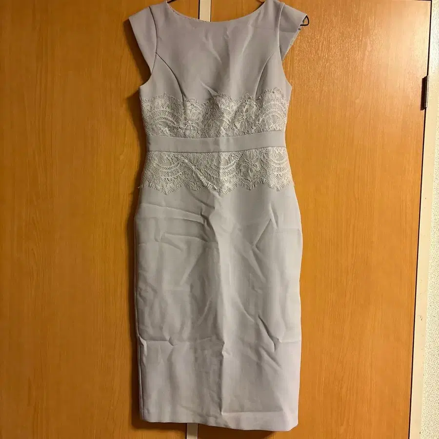 연보라색 레이스 장식 타이트 원피스