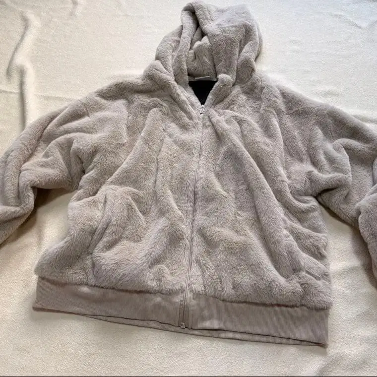 네-넷 후드 부착 베이지 플리스 자켓