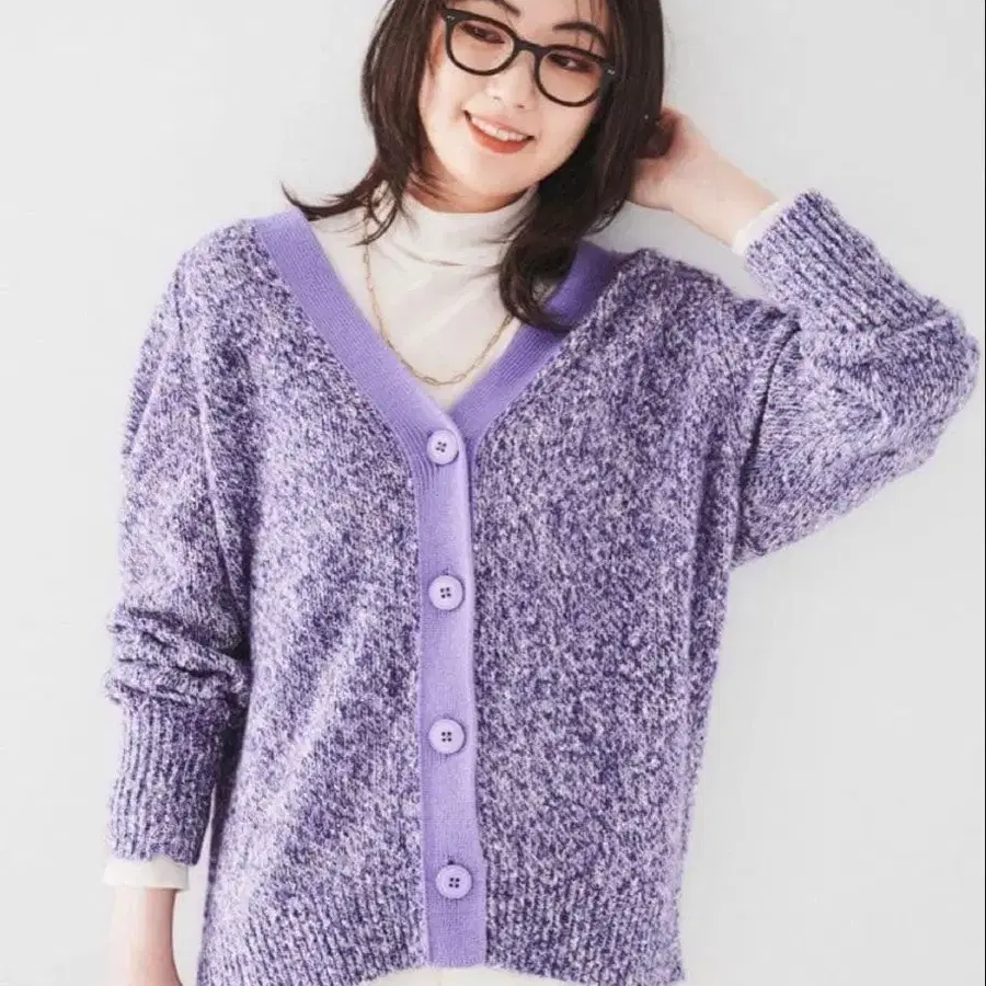 서로 다른 모양의 실을 믹스한 불규칙한 杢조의 느낌이 표정을 살린 짜임의 박스 V넥 가디건.