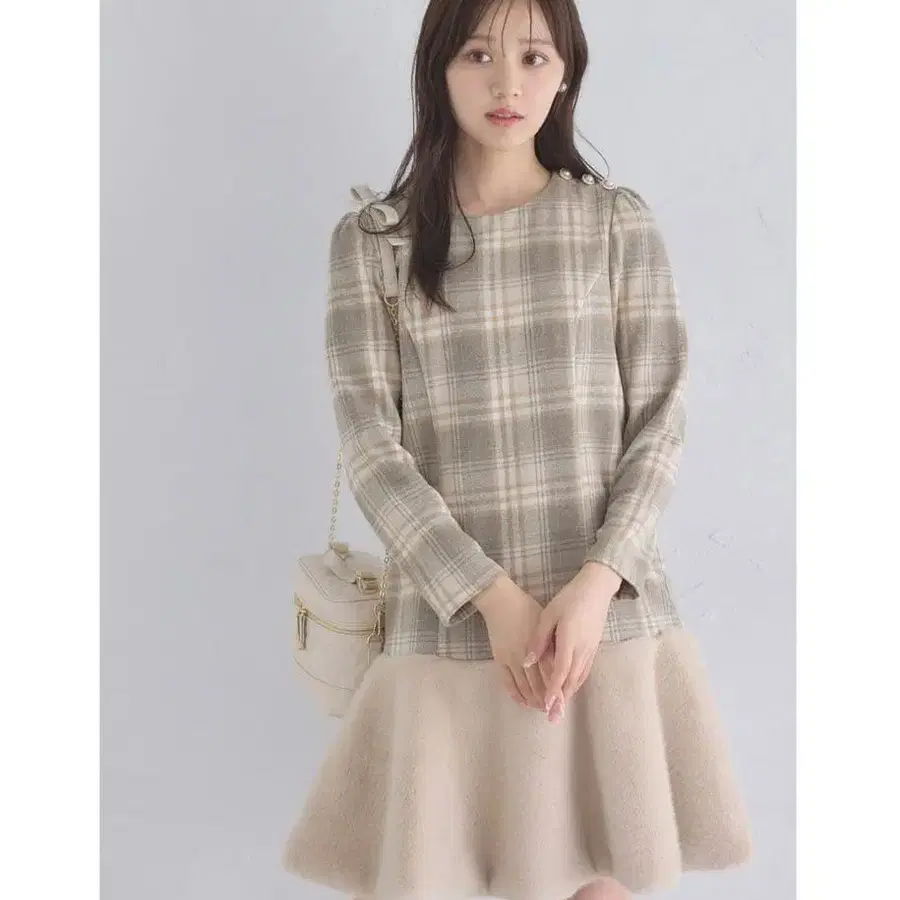 [ NO ] 186-189978 [ Item ] 밑단을 복슬복슬한 퍼로 절개한 시즌감 있는 체크 무늬 원피스. 가볍게 한 장만 입어도 클래시컬한 멋스러움의 사랑스러운 스타일이 완성됩니다 ◎ 어깨 부분의 펄 장식 단추가 고급스러운 악센트 ♪ 여유로운 A라인 실루엣으로 릴랙시하게 착용할 수 있는 것도 기쁜 포인트입니다. [ Material ] 겉감: 폴리에스테르 100% 안감: 폴리에스테르 100% 퍼: 폴리에스테르 100% [ Detail ] 총길이: 91cm 가슴 너비: 44cm 어깨 너비: 34cm 소매 길이: 57cm 소매 너비: 11.5cm 밑단 폭: 115cm ※ 뒷면 지퍼 있음 [ Color ] #01 베이지 3회 정도 사용한 새상품급입니다(^^)