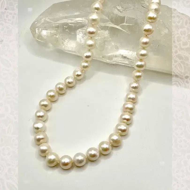 볼륨감 있는 진주알 11mm 대형 화이트 계열을 사용한 목걸이입니다.